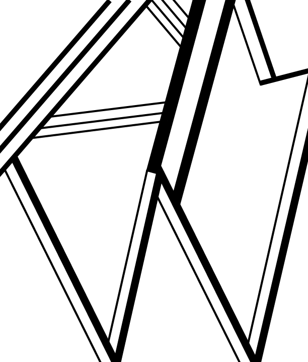 Using only diagonal lines, the initials A.M.W. are seen from an abstract perspective.